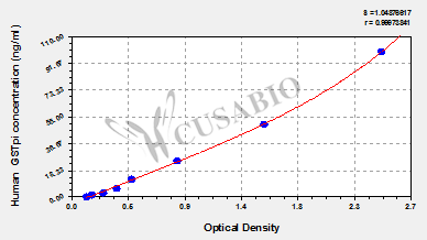 This Human GSTP1 ELISA Kit was designed for the quantitative measurement of Human GSTP1 protein in serum, plasma, cell supernates, tissue homogenates. It is a Sandwich ELISA kit, its detection range is 1.56 ng/mL-100 ng/mL and the sensitivity is 0.39 ng/mL .