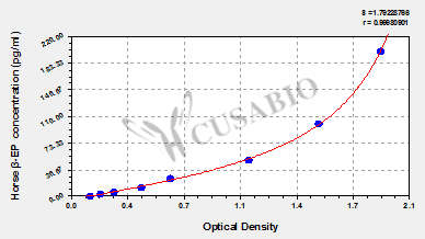 This Horse beta-EP ELISA Kit was designed for the quantitative measurement of Horse beta-EP protein in serum, plasma. It is a Sandwich ELISA kit, its detection range is 3.12 pg/mL-200 pg/mL and the sensitivity is 0.78 pg/mL.
